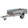 La remorque bagagère UNI 205.5 possède une caisse basculante à plancher en bois, des ridelles rabattables à l’avant et à l’arrière et une roue jockey.